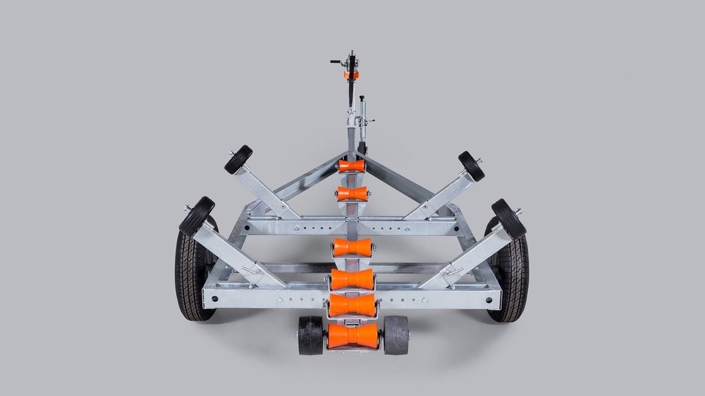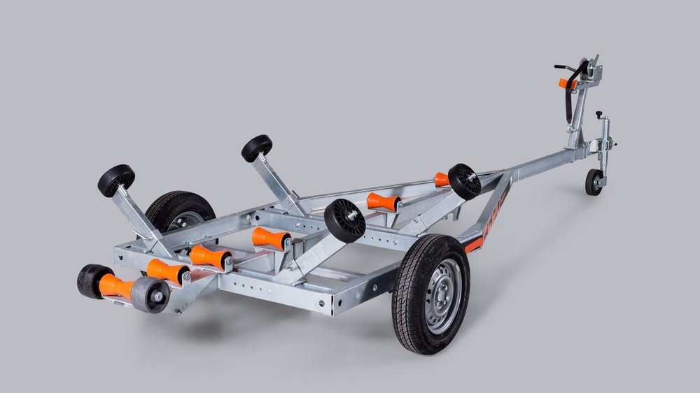 Solid varmgalvanisert og helsveiset stålramme. Kjølruller og justerbare sidestøtter hjelper båten til å ligge stødig og trygt på hengeren. Opplagshengere har ikke fjæring, skjermer eller lys og kan ikke kjøres på offentlig vei.