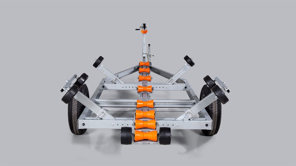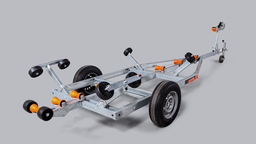 Solid varmgalvanisert og helsveiset stålramme. Kjølruller og justerbare sidestøtter hjelper båten til å ligge stødig og trygt på hengeren. Opplagshengere har ikke fjæring, skjermer eller lys og kan ikke kjøres på offentlig vei.