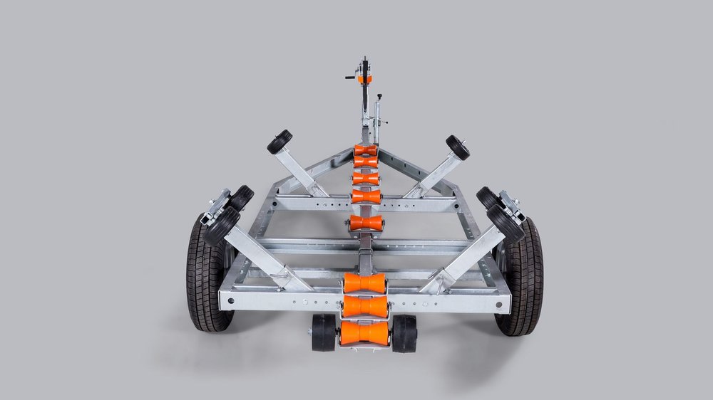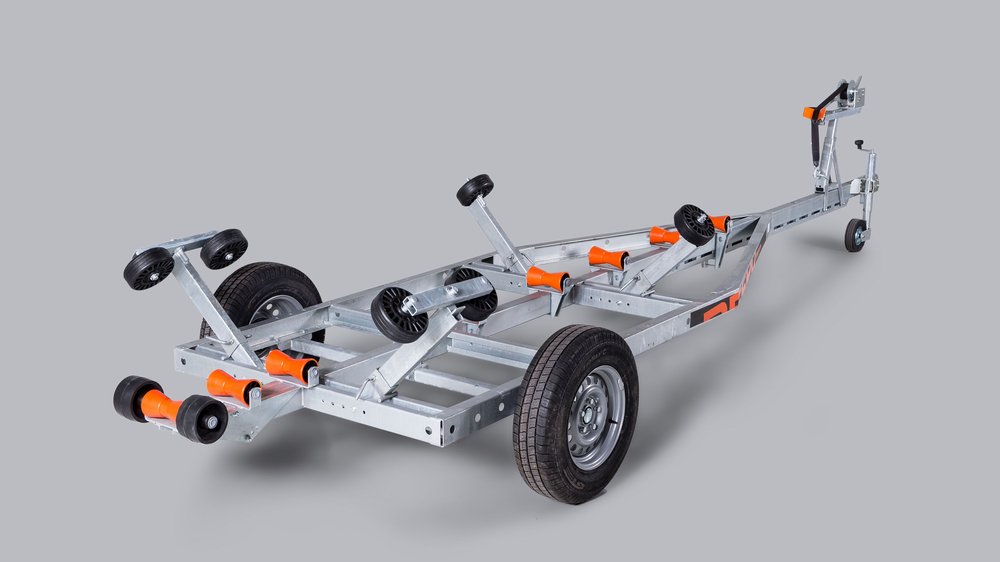 Solid varmgalvanisert og helsveiset stålramme. Kjølruller og justerbare sidestøtter hjelper båten til å ligge stødig og trygt på hengeren. Opplagshengere har ikke fjæring, skjermer eller lys og kan ikke kjøres på offentlig vei.