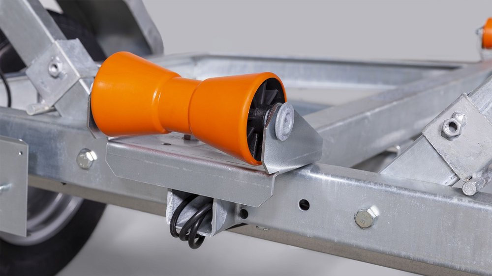 Solid varmgalvanisert og helsveiset stålramme. Skjermer og andre komponenter er i høykvalitetsstål med belegg i Magnelis®, som er 3 ganger mer motstandsdyktig mot korrosjon enn vanlig stål som brukes. Kjølruller og justerbare sidestøtter hjelper båten til å ligge stødig og trygt på hengeren.